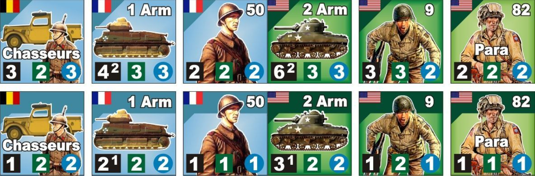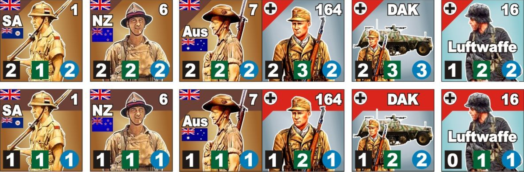 • zahlreiche Einheitenmarker (Infanterie, Panzer, Artillerie etc.)