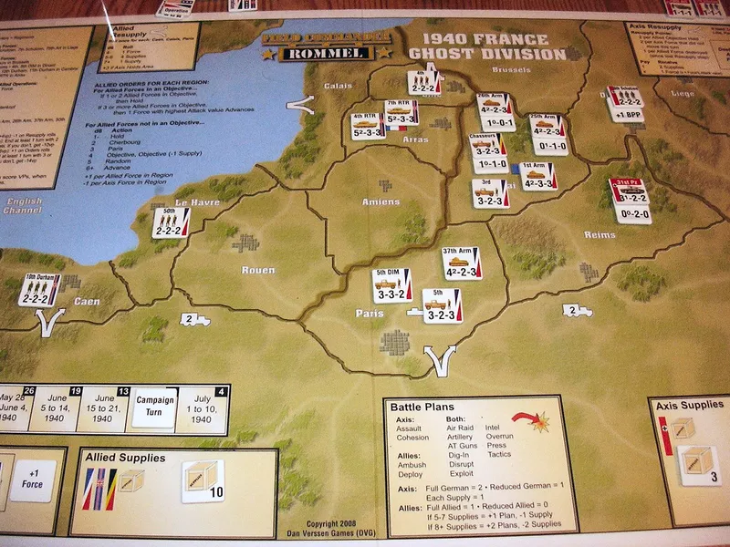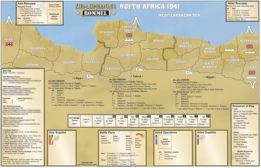 Field Commander: Rommel wurde von Dan Verssen entwickelt und ist das erste Kriegsspiel der „Field Commander”-Solitaire-Reihe historischer Brettspiele auf operativer Ebene.