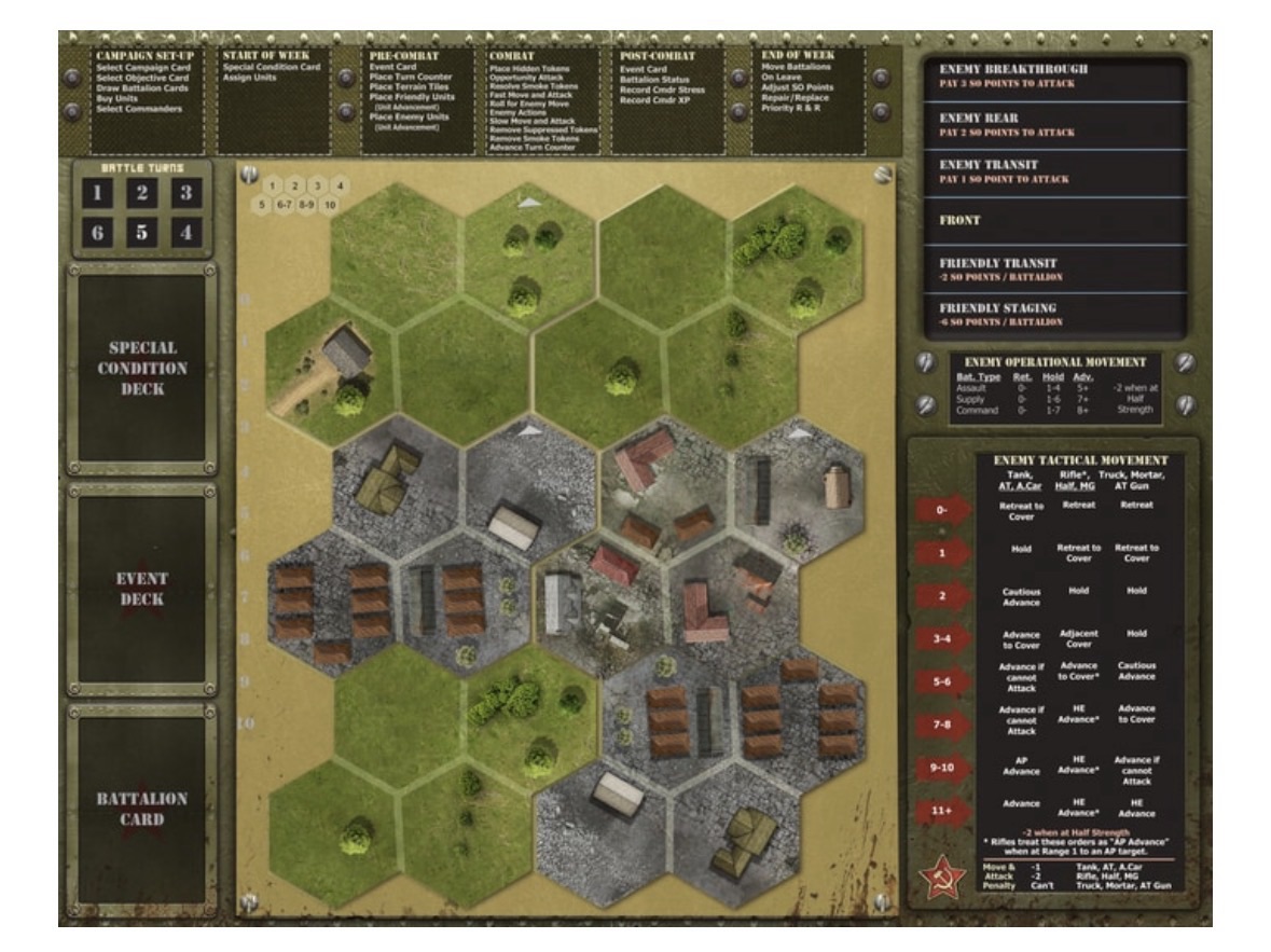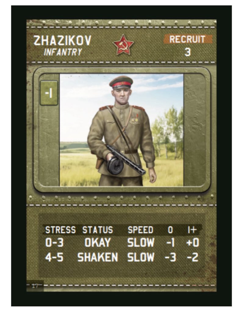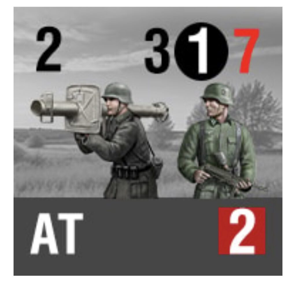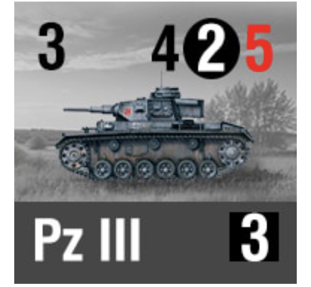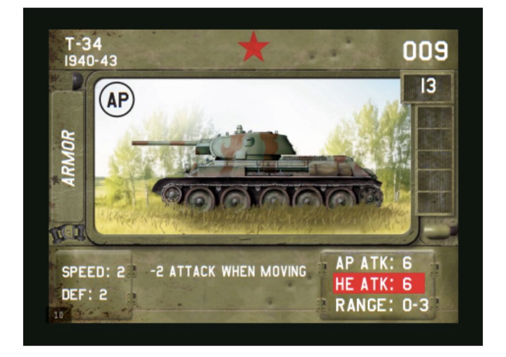 Einheitenkarten: Jede Karte stellt eine Panzer-, Infanterie- oder Unterstützungseinheit dar. Diese Karten enthalten wichtige Informationen wie Bewegungsreichweite, Angriffswerte, Verteidigung und besondere Fähigkeiten.